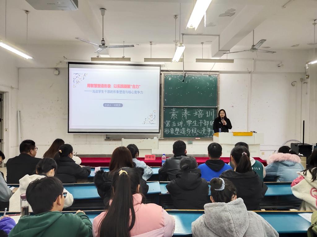 邓艳萍围绕学生干部的重要作用、什么是学生干部、优秀的学生干部方法、如何提高学生干部的执行能力、做好优秀学生干部的建议五个方面进行详细讲述。她强调,学生干部要有良好的组织领导能力、起到老师与学生的桥梁纽带作用、发挥“三自一助”的作用和模范带头作用。她提出,要加强学生干部执行能力,就需要各学生干部努力加强领悟、计划、指挥、控制、协调、授权、判断、创新八项能力,以保证高效的完成工作。最后,邓艳萍就如何做一位优秀的学生干部问题,要求同学们正确平衡学习、工作、生活的关系,树立良好学生干部形象,提高自身素质。培训过程中,她将问题抛给在座认真聆听的同学们,倾听同学们的想法,并现场为他们答疑解惑。