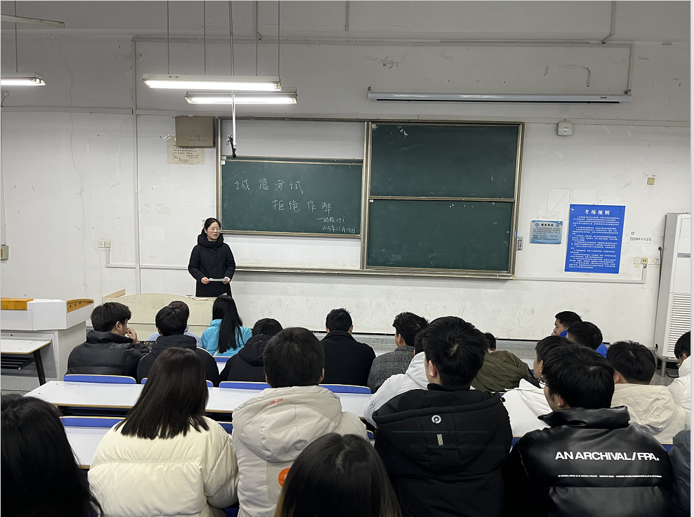各班主要干部带领班级同学认真学习学校相关考试违纪处分文件,介绍了学院近几年出现的作弊案例,向同学们传达了诚信考试的重要性和必要性,告诫同学们要认真复习迎考,遵守校规校纪,诚信考试,拒绝作弊。