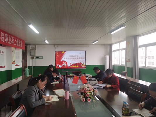 为进一步强化使命担当,切实发挥基层党组织的战斗堡垒作用和党员的先锋模范作用,4月13日下午,外国语学院在学院会议室举行理论学习中心组集中学习,学院党政领导、党委委员、支部书记、科级以上干部以及全体辅导员参加会议,因疫情原因两名成员线上参会。会议由学院党委副书记、学院纪委书记张海亮主持。
