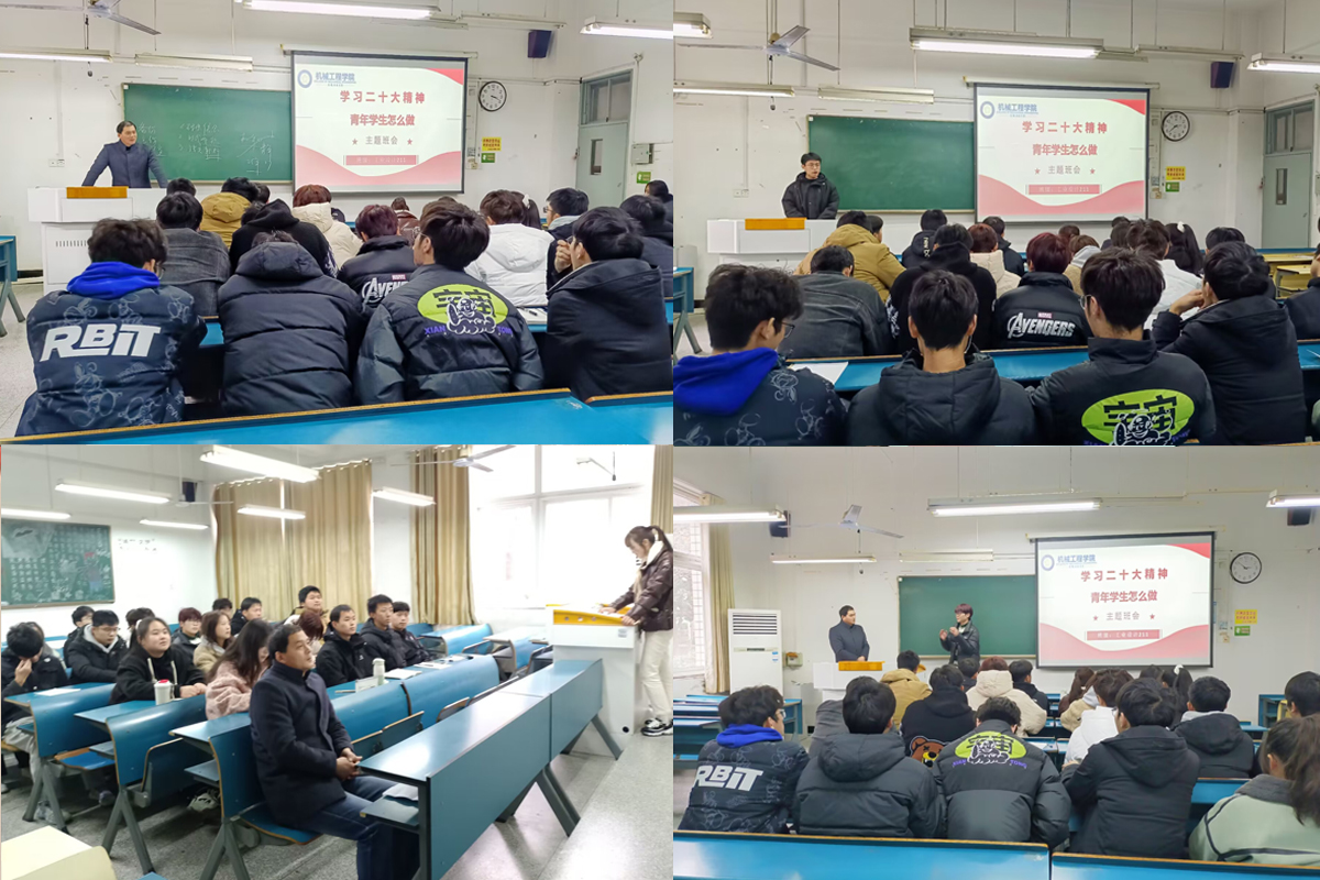 为深入学习贯彻党的二十大精神,教育引导新时代青年学生明确职责、勇担使命。近日,机械工程学院组织学生班级开展“学习党的二十大精神,青年学生怎么做”主题班会。学院党委副书记、纪委书记张程参加了工业设计211班和机械设计制造及其自动化222班的主题班会,并与班级学生就青年学生如何以实际行动学习贯彻党的二十大精神进行了交流。