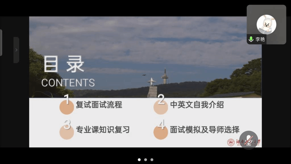 在法学专业的考研复试指导会议中,郭荣雨、杨艳、叶广龙和刘啸天等人结合自身经验,深入浅出地分享自己的考研经验,为考研学子提供了指导。其中,杨艳详细阐述了良好心态对于复试的重要性。也鼓励考生们在复习过程中注重专业知识和英语的学习,以保证高效率的复习。在杨艳的指导下,同学们对考研有了更加深入的认识。汉语言文学专业的考研复试指导会议同样引人关注。黄玉瑾,李艳,张梦雪,蒋佳豪通过线上交流分享自己的研究方向、思路和方法,共同探讨复试的难点和应对之策。蒋佳豪认为:“复试考察的不仅是知识,更是学术思辨能力和学术交流能力。”张梦雪也分享了自己的考研经验,强调了复试面试的关键要点。