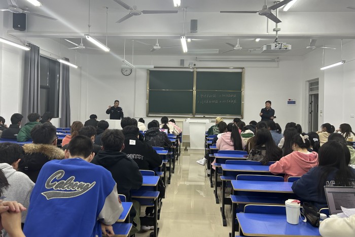 为进一步提升大学生防诈骗意识,减少电信诈骗案发率,切实保障大学生财产安全,4月6日晚,蚌埠市龙湖派出所所长陈兴武对财经学院2022级学生进行反电信诈骗宣传。