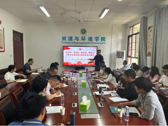 随后,安徽农业大学资环学院副院长张震主讲《学思想,强党性,不断夯实基层教学组织标准化建设》微党课,并详细介绍了自1928年建校以来安徽农业大学资环学院专业学科建设的发展历程和党建工作。