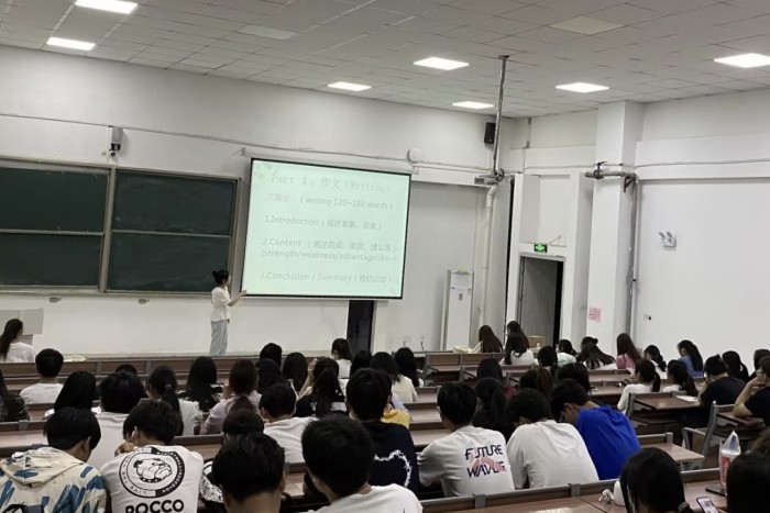 尹成超从“听力、阅读、翻译、写作”四大版块,详细介绍了考题的重难点以及做题经验,着重强调了考试的注意事项,列举了大量详实的案例,使同学们受益匪浅。张佳慧、李荣荣两位同学结合自身四级备考实战经验,从学习英语的方法入手,介绍了自己探索学习英语的过程,分享了日常记背单词的经验,讲解了具体真题,并以身边同学为例,提醒同学们合理分配考场时间,做到有条不紊地规划做题顺序。与会同学也和主讲老师及学姐们交流了笔试和口试中备考过程中遇到的问题。
