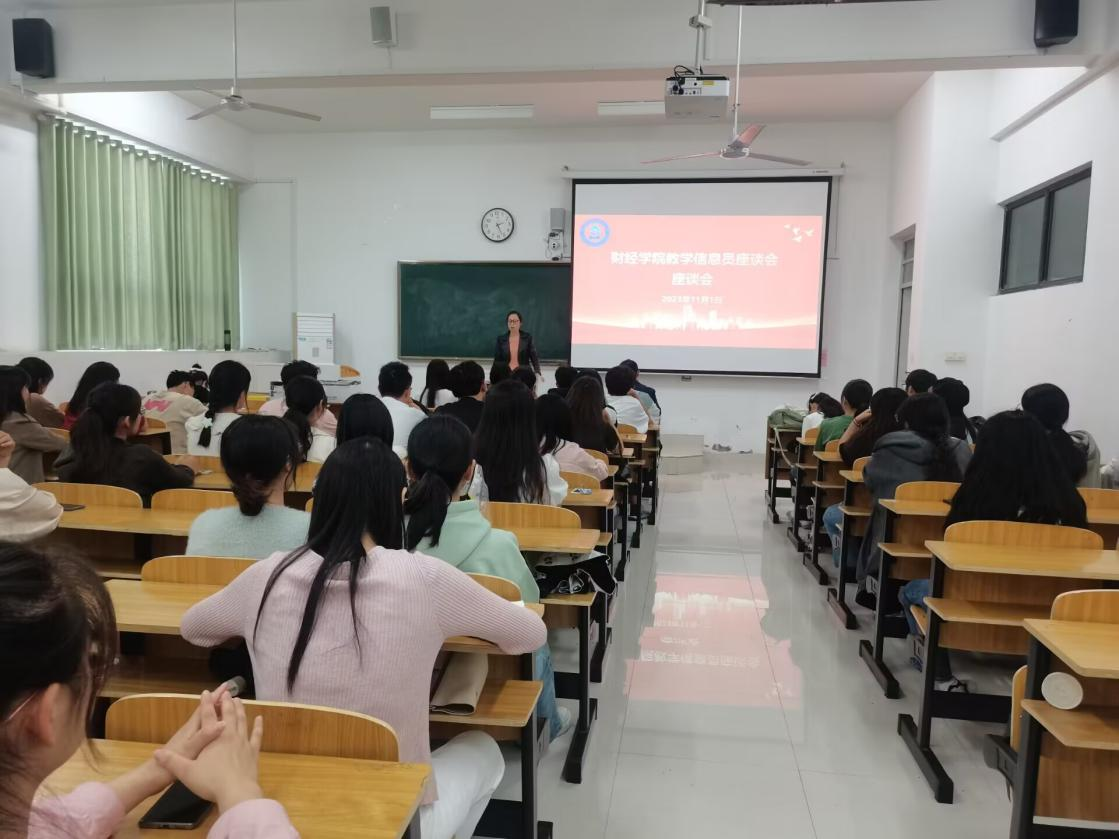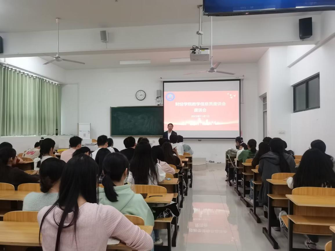 为高质量迎接本科教育教学审核评估工作,11月1日,财经学院组织召开教学信息员座谈会。学院党政领导和有关教师全体教学信息员参加本次会议。会议由辅导员宣晶晶主持。