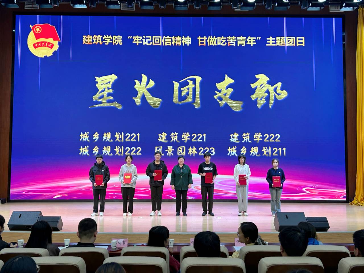 11月5日,建筑学院在东辅楼二楼报告厅开展“牢记回信精神 甘做吃苦青年”主题团日。学院党政领导、有关教师、团学干部、团员发展对象、入团积极分子、青马学员、优秀团队和优秀学生代表,以及全体2023级新生参加活动。