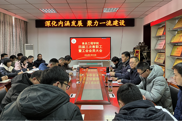 1月14日下午,食品工程学院在学院会议室召开四届三次教职工暨工会会员大会,大会由学院党委书记付光玺主持,学院全体教职工参会。