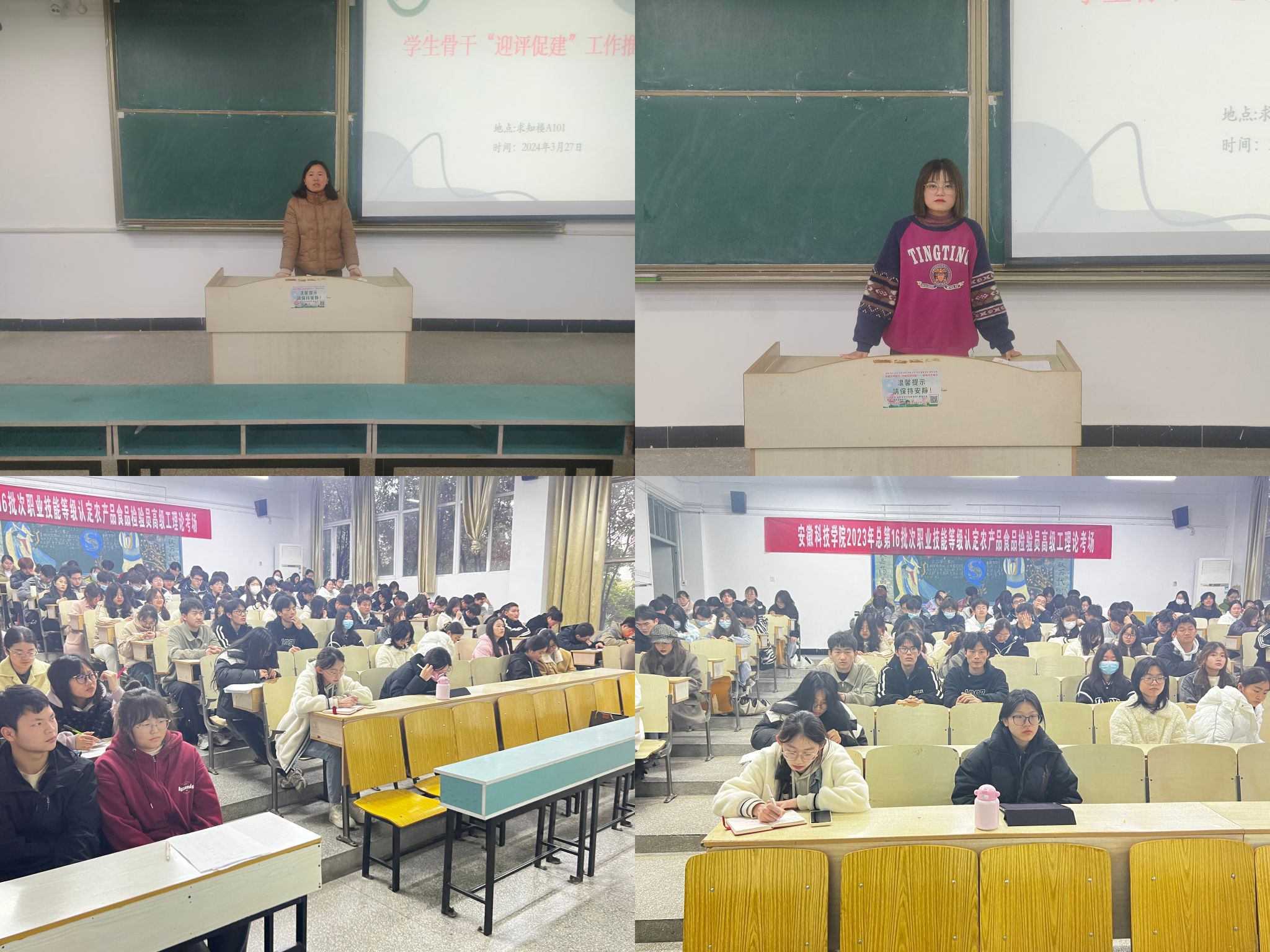 会上,学院学生会主席团成员张梦茹、王雨倩分别宣读和领学《2024年本科教育教学审核评估学风建设工作方案》和《安徽科技学院本科教育教学审核评估应知应会手册(学生版)》。学院团委兼职副书记张思语领学《安徽科技学院学生日常行为规范(试行)》。学生会主席团成员左灿宣读了《生命与健康科学学院学风建设倡议书》。