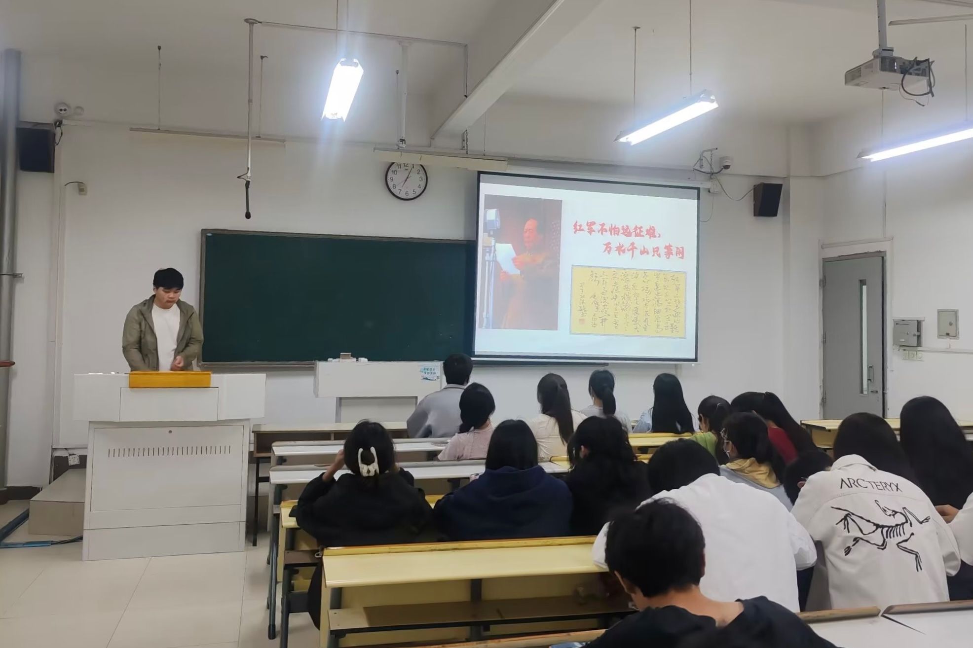 支部党员虞俊松以长征背景为首要切入点,介绍了红军长征的原因、路线及重大意义等。他对红军长征路上的每个艰难时刻都进行了详细地讲解,如飞夺泸定桥,爬雪山过草地等。他鼓励同学们积极提高自己的学习与实践能力,提升个人综合素质,向长征的革命先辈榜样学习,从中汲取前进动力,认真做好个人学业规划、职业规划,锤炼过硬的学习本领。会上,与会党员还向同学们详细阐述了入党的条件和程序,希望同学们能够认真学习、积极工作,不断提升个人综合素质,积极向党组织靠拢。
