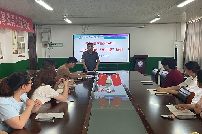 5月26日上午,外国语学院党委副书记张海亮在学院会议室主持召开2024年上半年资助“两节课”培训会。