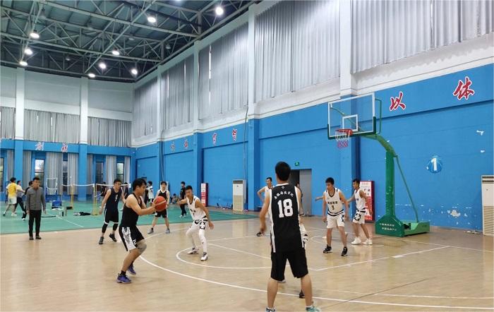 6月5日下午,安徽海盛教育科技有限公司篮球队应校教职工篮球协会邀请,在凤阳校区体育馆举行友谊比赛。