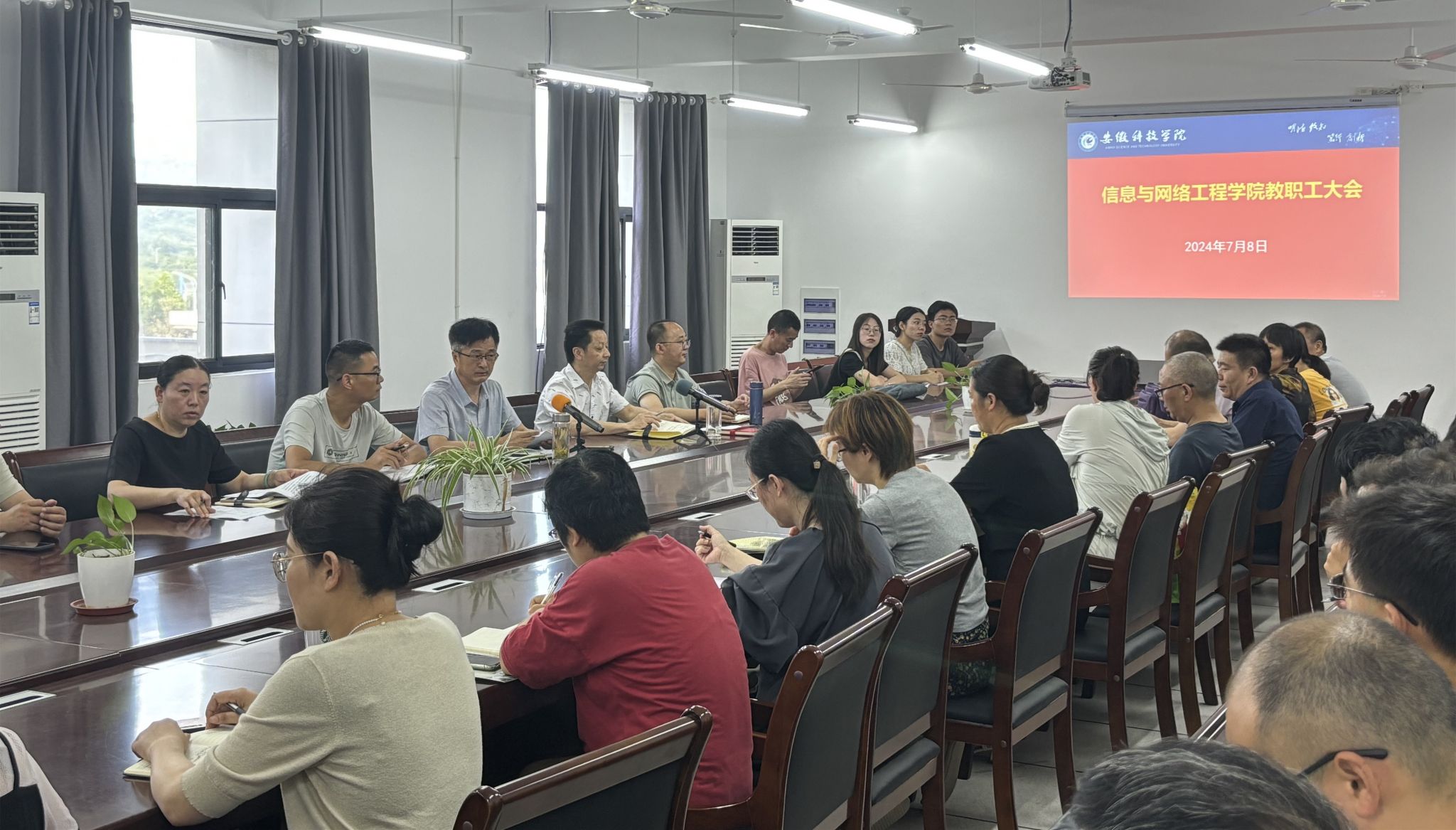 7月8日上午,信息与网络工程学院在尚行楼B418召开全体教职工会议。学院党政领导以及全体教职工参加了会议,会议由学院党委书记王振其主持。