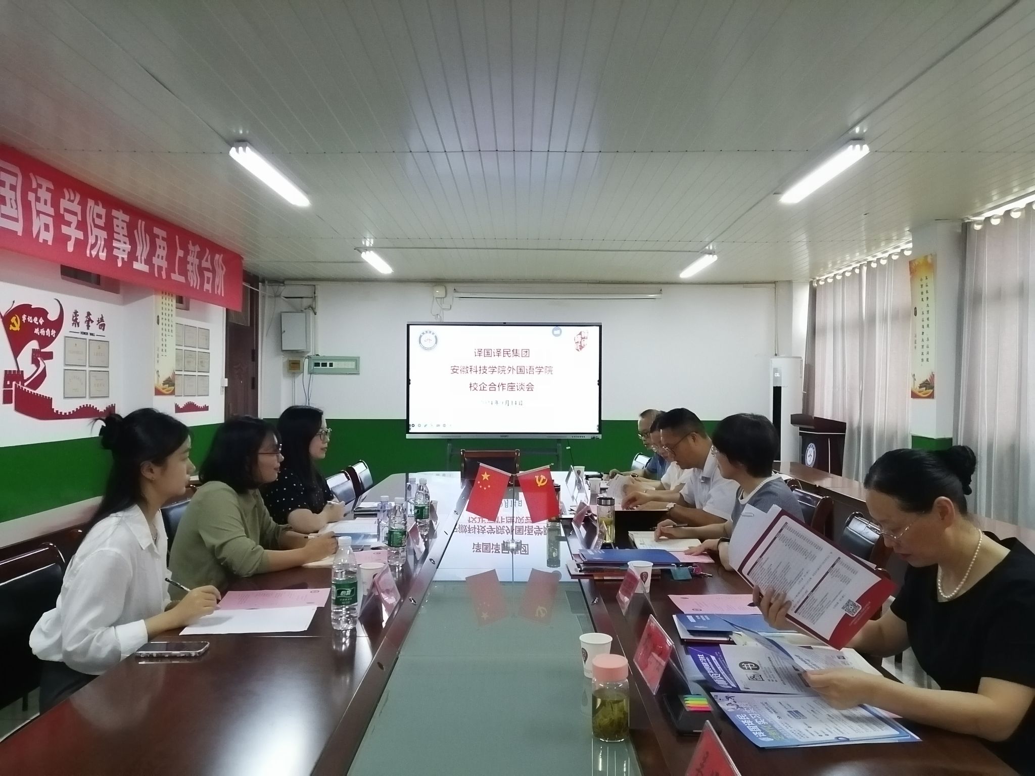 9月14日上午,译国译民集团党支部书记洪细梅、高校事业部总经理郑莺、校企合作经理尹周锐等一行来外国语学院开展校企合作事宜。学院党政领导和翻译专业教师参加了座谈会。会议由副院长洪民主持。