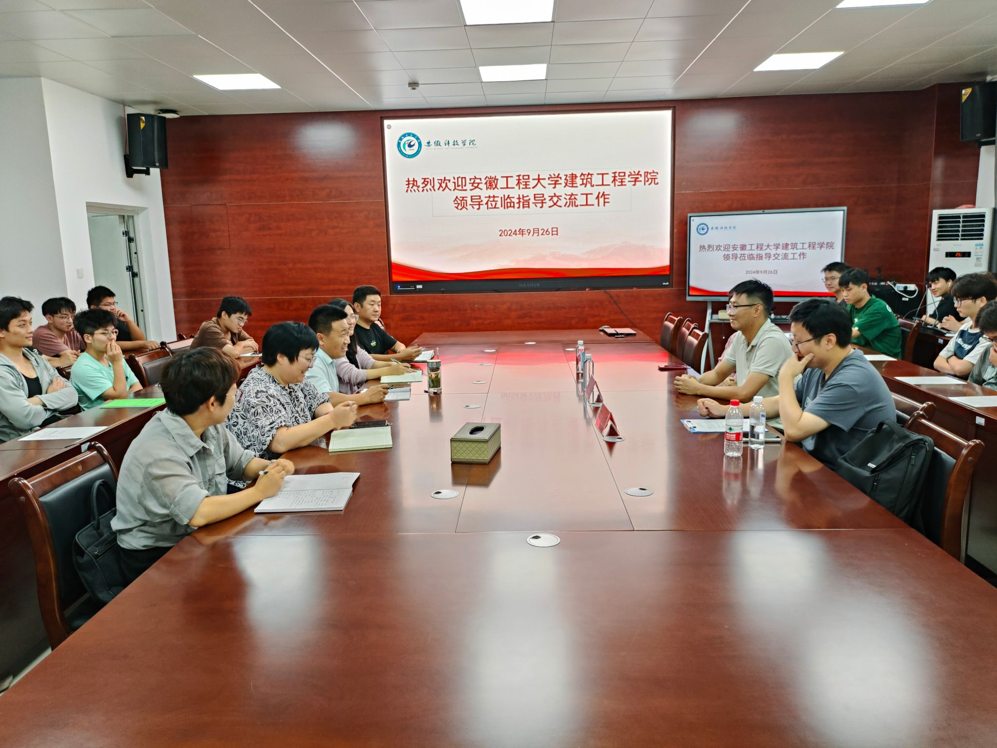 9月26日下午,安徽工程大学建筑工程学院副院长曹兵,土木工程系主任黄博,研究生导师代表杜怡韩等一行来建筑学院开展访问交流及研究生招生宣传。建筑学院党政领导、土木工程专业教研室主任韩意、相关辅导员及部分毕业生参加。会议由学院党委副书记谢宜勤主持。
