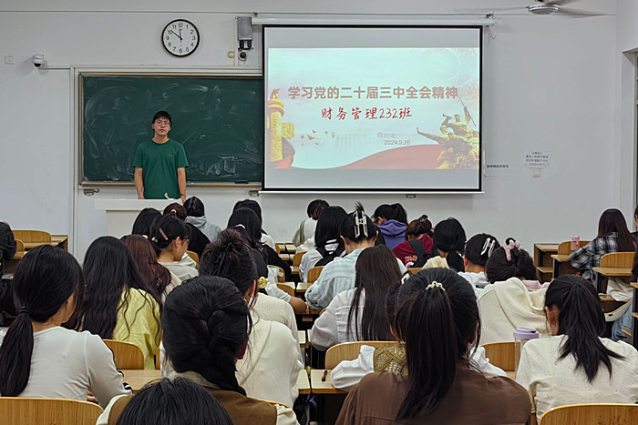 9月25日至29日,财经学院团委组织学院各团支部开展主题团日活动,学习贯彻党的二十届三中全会精神,凝聚思想共识,汲取奋进力量,学院有关教师全程指导。