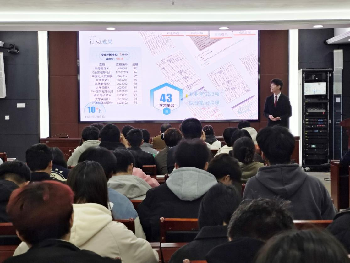 比赛现场的气氛紧张而热烈。每一位选手都怀揣着对未来的憧憬和期待,在舞台上尽情展现着自己的风采。他们身着正装、意气风发,通过精彩的PPT 展示和生动的演讲,阐述了自己对未来职业和发展的规划和憧憬。选手们的精彩表现也赢得了现场观众们的阵阵掌声。同学们纷纷表示自己从选手们的职业规划中得到了很多启发,更加明确了自己的职业方向,也认识到只有不断努力才能实现自己的职业梦想。