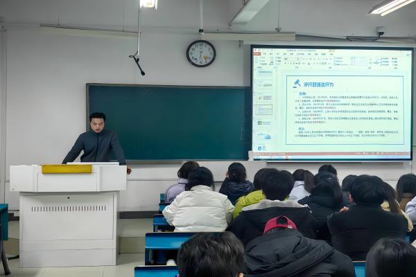 主题班会入人心。11月下旬起,全校班级召开“强化法治教育,建设法治校园”大学生法治教育主题班会,主题班会由学生处组织辅导员团队进行内容制作和案例筛选,围绕高校法治教育、法律责任、法律案例以及自我规范和保护几个方面进行讲解,通过案例研讨、小组讨论等形式,深入探讨宪法对个人与社会的重要意义,进一步提升学生对宪法权威的认识。