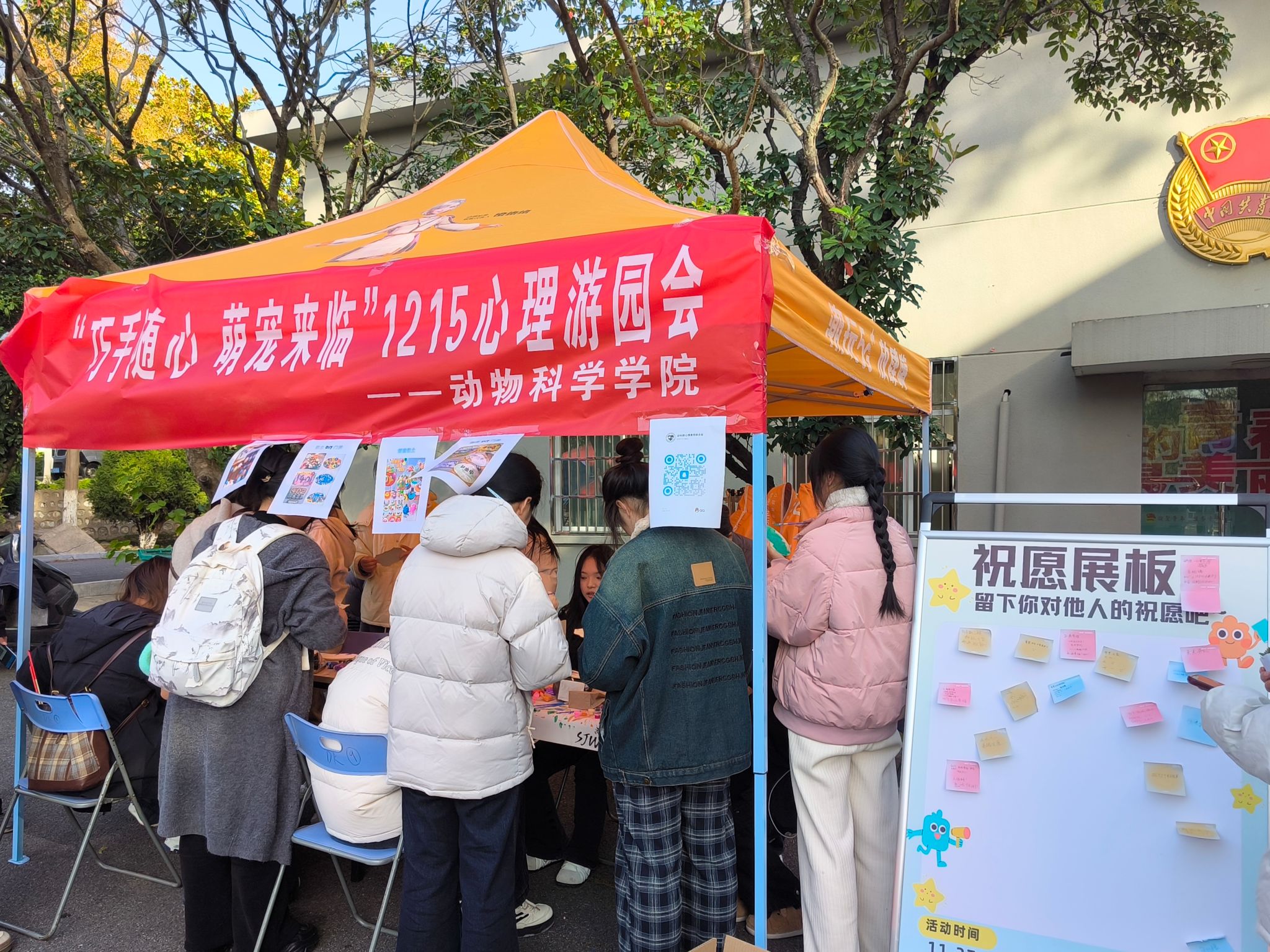 11月27日,动物科学学院“巧手随心,萌宠来临”心理游园会在五四广场拉开序幕,活动内容包括DIY黏土娃娃、DIY门牌、创造星球、黏土棒棒糖创意手工项目以及领养纸制小狗、玩偶合影等互动项目。在制作过程中,同学们充分发挥创造思维,制作出了一款款独特的作品,体验到了创作的乐趣和成就感。通过手工制作劳动体验,引导学生用双手感受美好事物,活动充分体现了劳动对心理健康的促进作用,有助于学生培养理性平和、积极向上、热爱生活的心理品质。