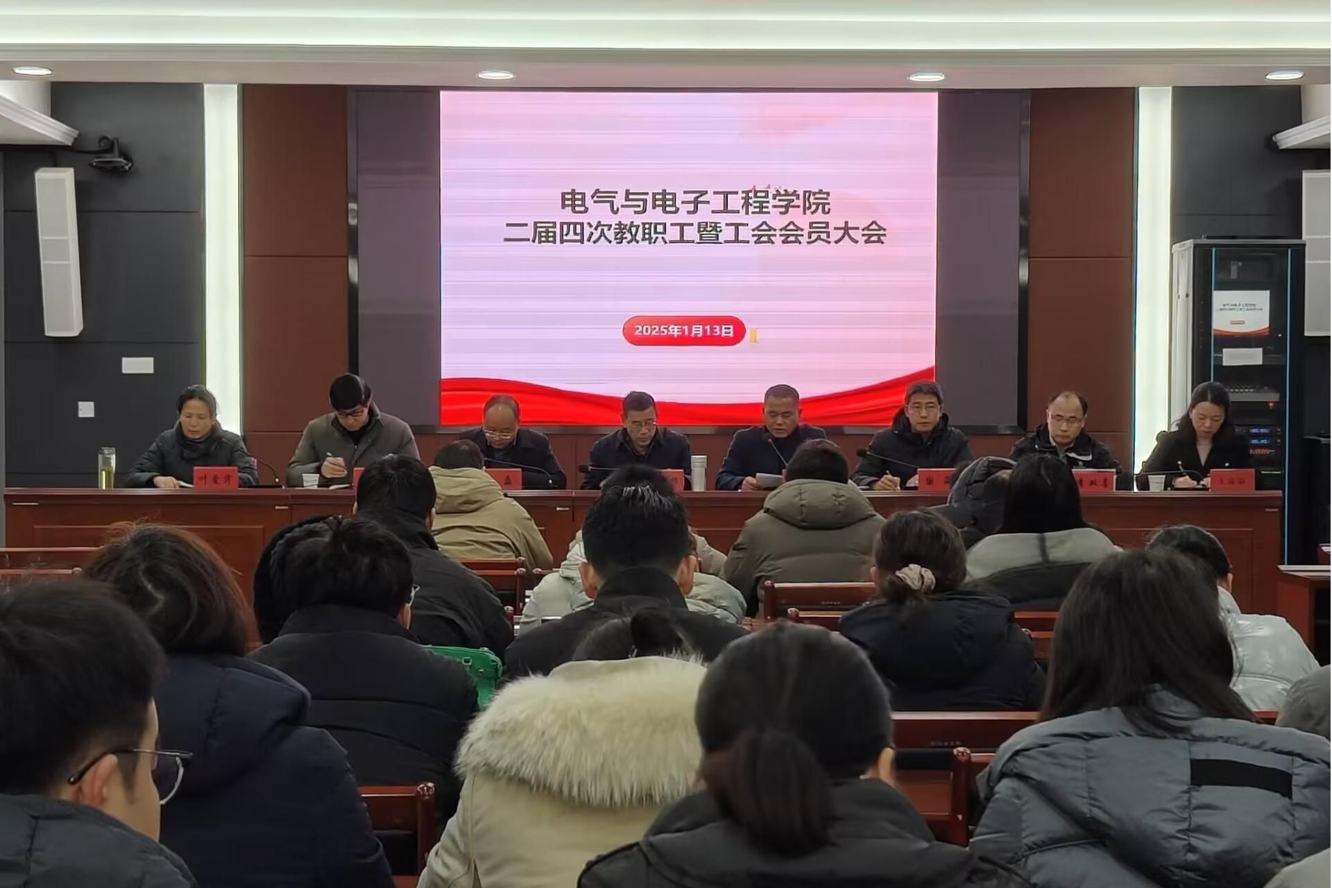 1月13日,电气与电子工程学院在西辅楼111会议室召开二届四次教职工暨工会会员大会。学院党政领导及全体教职工参加了会议,会议由党委书记骆海邦主持。