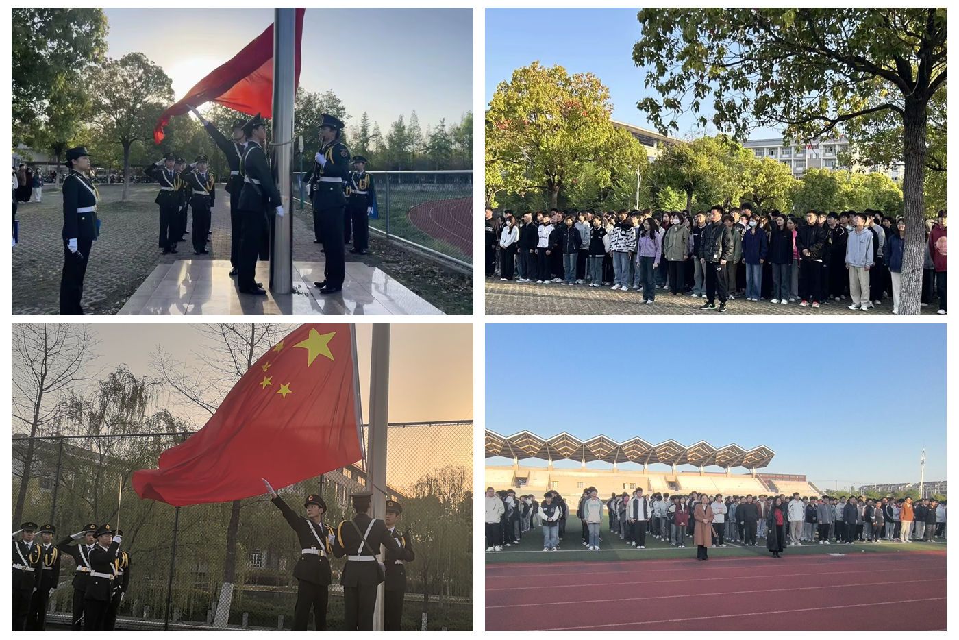 6点40分,升旗仪式正式开始。校国旗护卫队队员们迈着整齐的步伐入场,将五星红旗护送至国旗台前。随着国歌响起,擎旗手振臂一挥,鲜艳的五星红旗随风飘扬。全体师生肃立,面向国旗行注目礼。