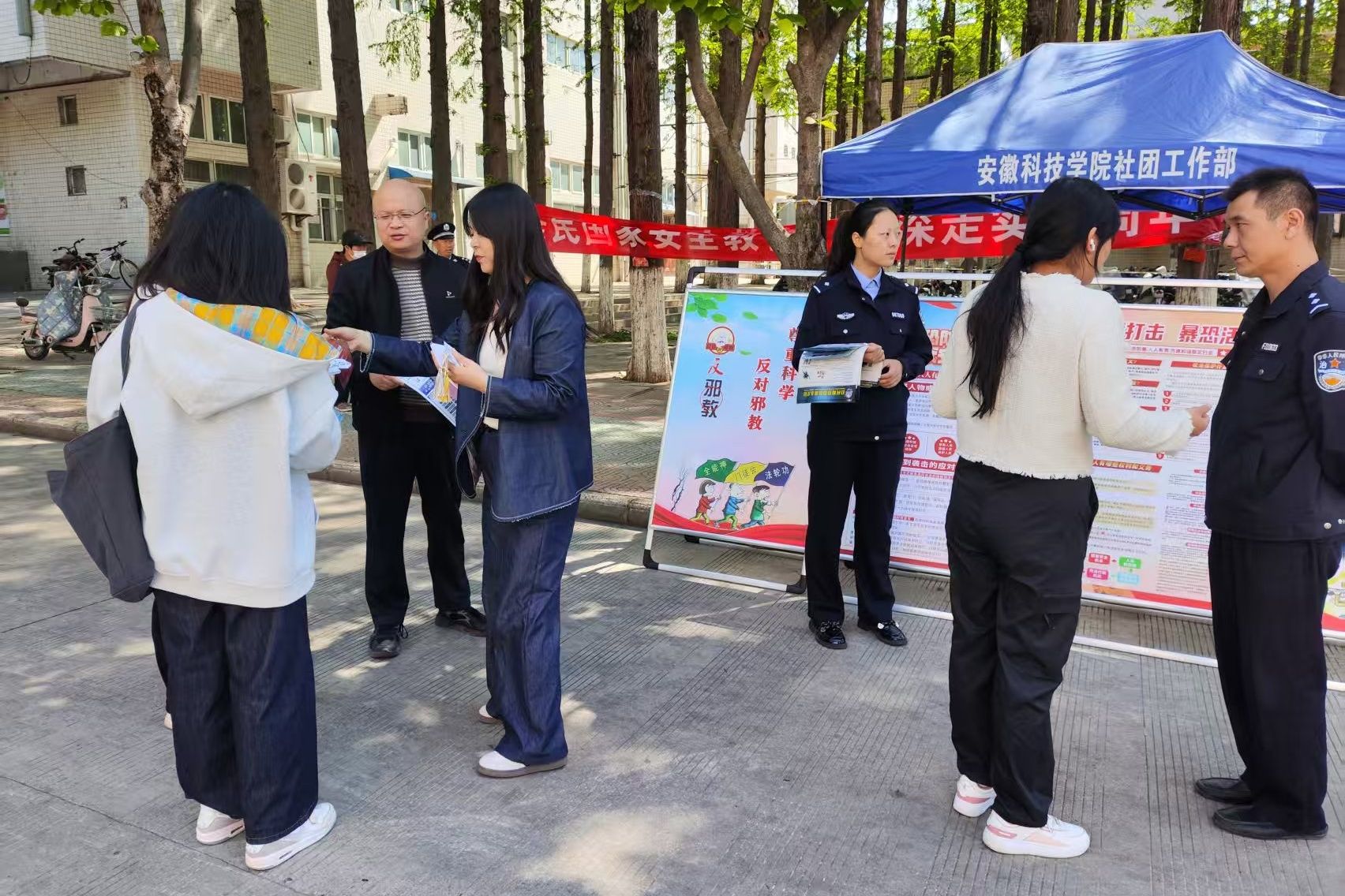 4月15日上午,校保卫处、保密办联合凤阳县公安局、府城派出所在凤阳校区警务站前开展反邪教、反暴恐、反间防谍、防电诈及保密等安全宣教活动。活动通过悬挂横幅、设置宣传展板、警官现场讲授安全知识、发放安全教育宣传传单及保密文化用品等活动,营造了浓厚的“国家安全、关系你我”宣传教育活动氛围,向全校师生宣传普及了一堂中国足彩网国家安全教育知识的生动课程。