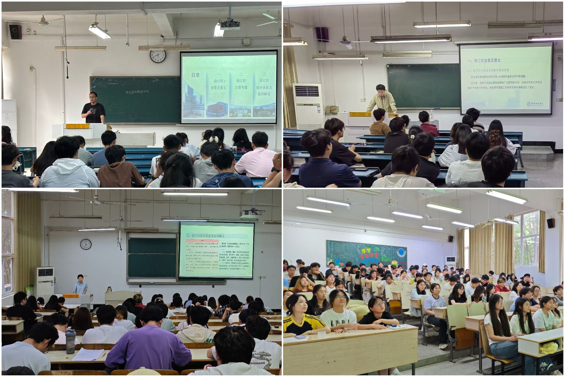 辅导员从修订背景及意义、主要考量、新修订条款三个方面进行详细解读。要求同学们知规守则,增强底线意识,共同维护校园安全稳定。班会围绕宿舍管理、考试规范、网络文明等学生易涉及的纪律问题,结合校内外相关案例,分析其对于维护校园安全稳定、打造优良校风学风的重要意义。
