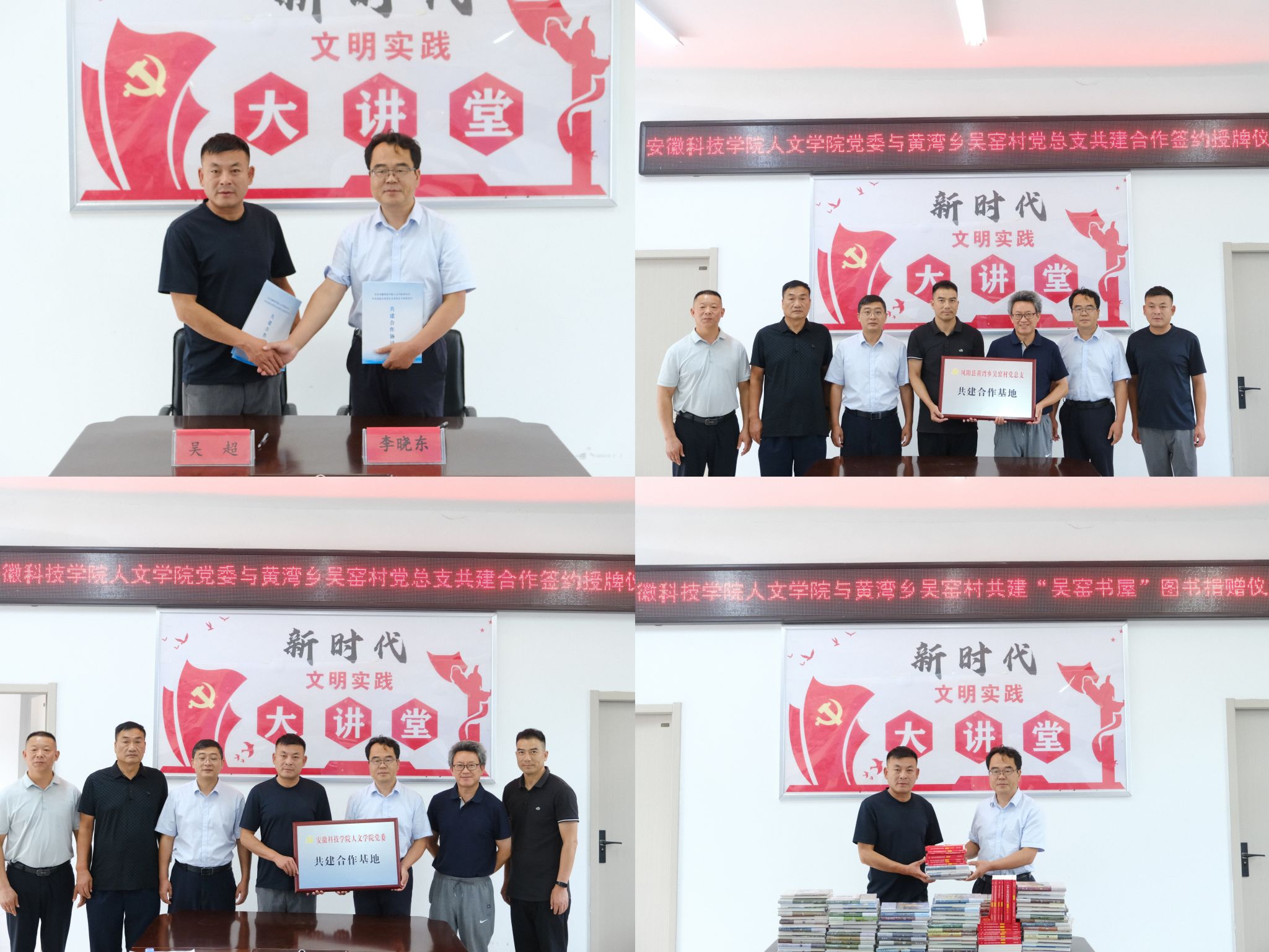 7月16日,人文学院党委与凤阳县黄湾乡吴窑村党总支,在吴窑村村民委员会举行共建合作签约授牌仪式。人文学院党委书记、院长李晓东,正处级组织员张严政,黄湾乡乡长曹旭,吴窑村党总支书记吴超,吴窑村第一书记、驻村工作队队长宛传平等出席活动。签约授牌仪式由宛传平主持。