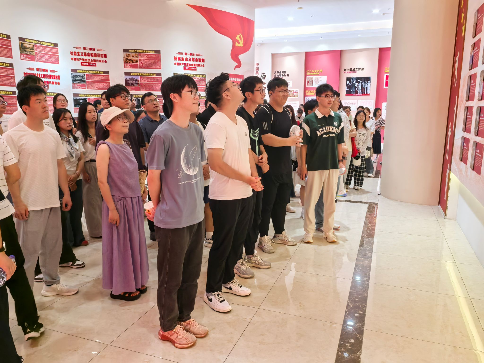 为深入学习贯彻党的创新理论,强化研究生思想政治教育,推动跨学科协同育人走深走实,9月5日,资源与环境学院联合马克思主义学院、生物医学与健康学院共同组织100余名2025级研究生,开展以 “感悟思想伟力?践行初心使命” 为主题的研学实践活动。马克思主义学院党总支书记杨仕勇,资源与环境学院党政办主任吴国良,生物医学与健康学院党政办主任王传林全程带队,马克思主义学院王方友老师担任讲解员,旨在通过 “理论 + 实践”“校内 + 校外” 的模式,帮助研究生在实地探访中深化对党的认识,提升政治素养与社会认知能力。