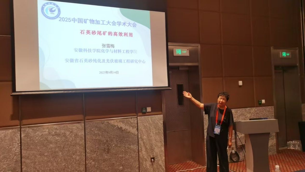会议期间,学院汪徐春教授、张雪梅教授、郭雨副教授和郑胜彪主任分别做了《石英砂的纯化技术与应用研究》、《石英尾砂高效利用》、《微介观孔隙结构对石英砂提纯的影响》和《石英砂粒度控制技术研究》的学术报告,展示了安徽省石英砂纯化及光伏玻璃工程研究中心在石英砂矿物提纯加工相关研究的最新成果,并和与会专家、学者和相关企业开展了深入研讨和交流。