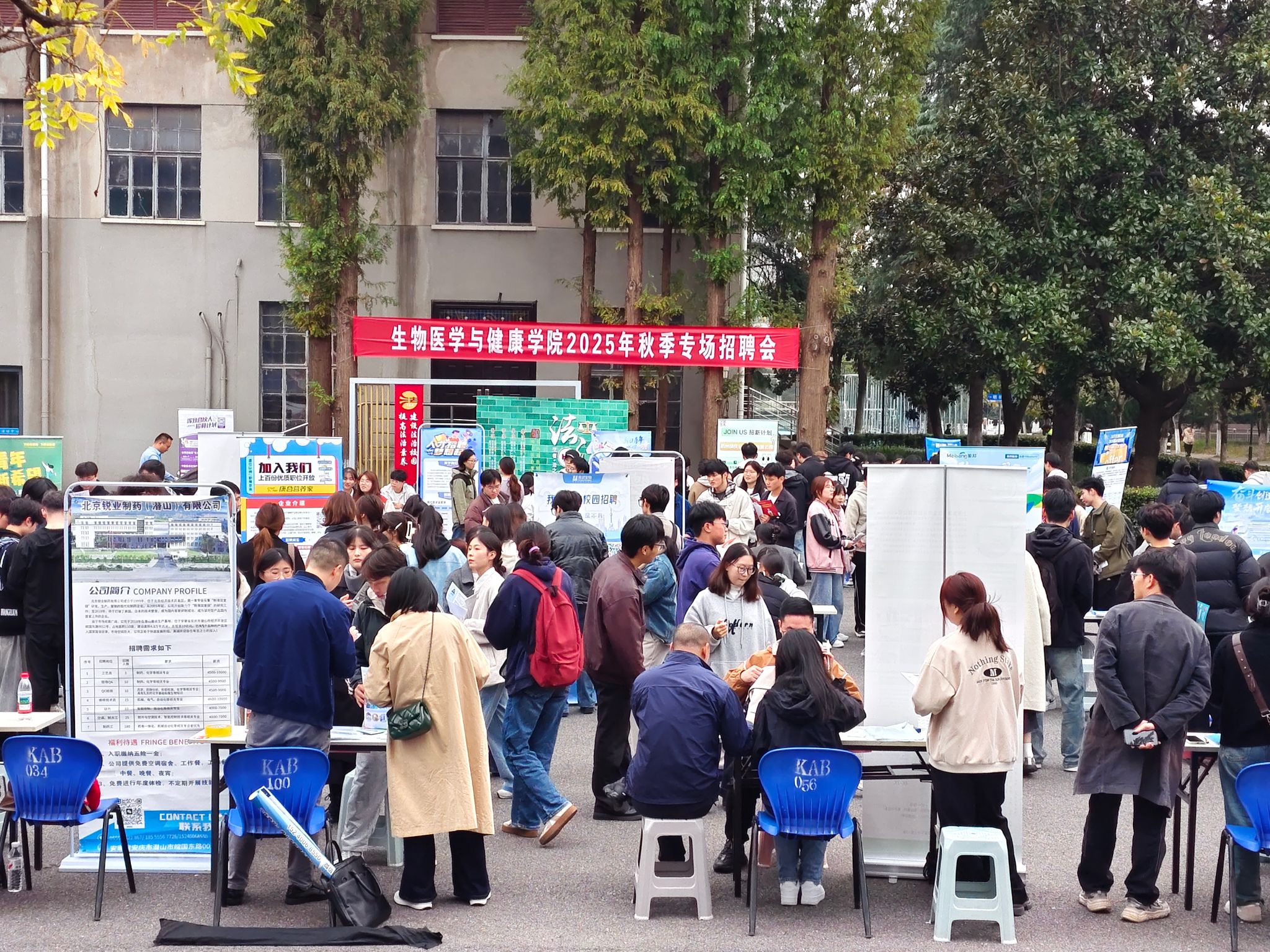 10月29日下午,生物医学与健康学院在凤阳校区东区五四广场举办“‘医’起奔赴,‘健康’致远”2025年秋季毕业生专场招聘会。