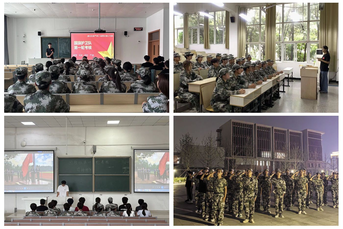 严把理论素养关,筑牢思想根基。在招新过程中,队内系统开展了国旗护卫队章程知识测试、无领导小组讨论、面试问答等多形式理论考核,全面考察预备队员的政治觉悟、纪律意识、团队观念与语言表达能力。同时,结合辅导员推荐与指导老师综合评价,确保每一位入选队员政治立场坚定、思想品行端正,从源头上夯实队伍建设的组织基础。