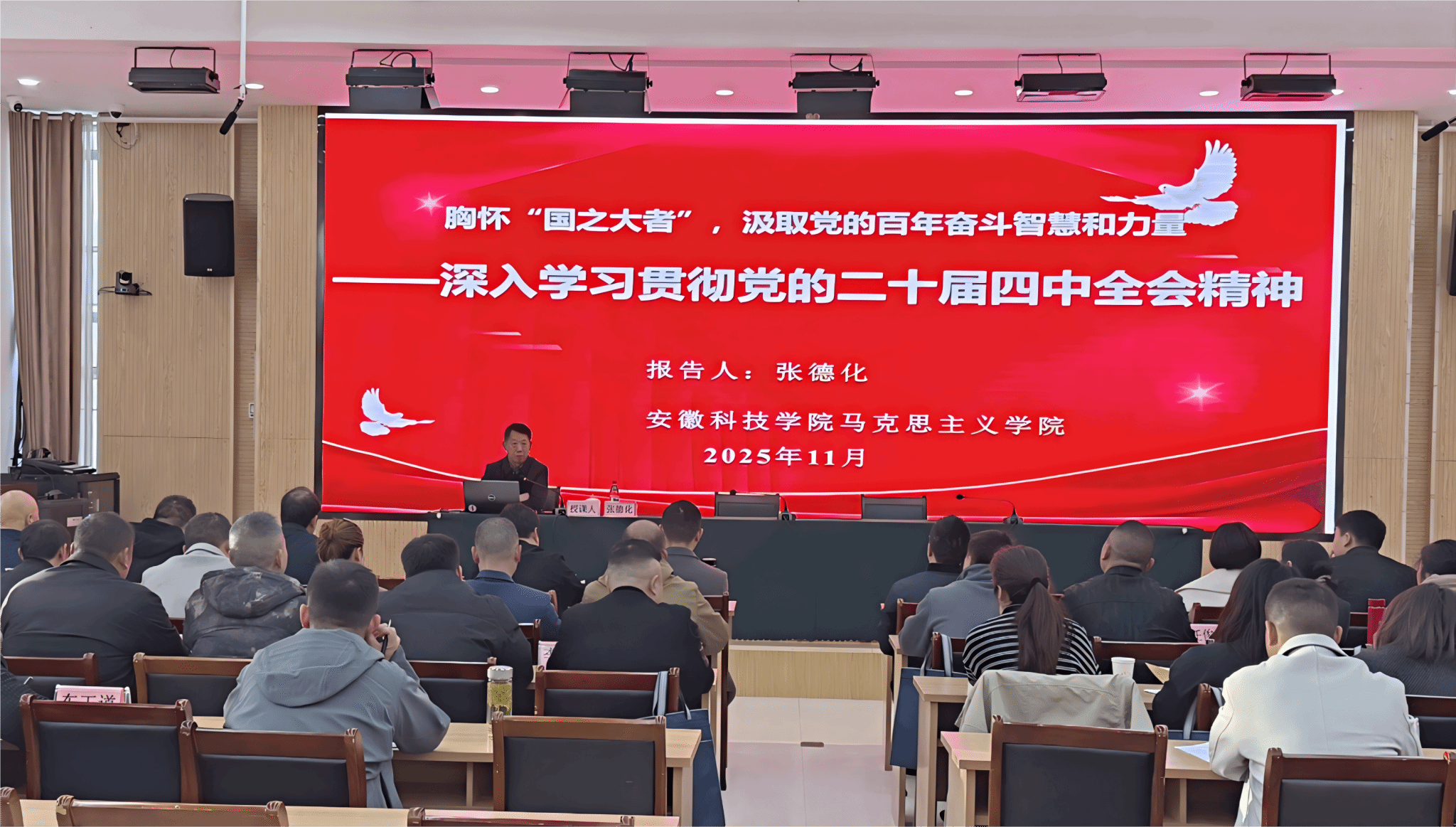 在专题教学环节上,安徽科技学院马克思学院院长张德化教授围绕《胸怀“国之大者”,汲取党的百年奋斗智慧和力量》这一主题,对党的二十届四中全会精神进行了系统解读,引导学员们进一步提高政治站位,强化乡村振兴责任担当,为芜湖市白茆镇经济社会发展做出新的贡献。安徽财经大学新徽商研究中心主任、蚌埠市品牌学会会长王唤明教授以《智慧农业全产业链的解构与重构及现代招商引资模式》为题,深入剖析了现代农业发展的新趋势、新模式,为白茆镇农业产业化升级与精准招商提供了新思路。安徽财经大学中国乡村(小岗)振兴研究院研究员和院长、安徽省委讲师团理论宣讲专家库宣讲专家赵守飞教授则带来了《乡村振兴的路径创新与集体经济实践》的精彩课程,结合大量鲜活案例,分享了发展壮大村级集体经济的有效路径与创新方法。
