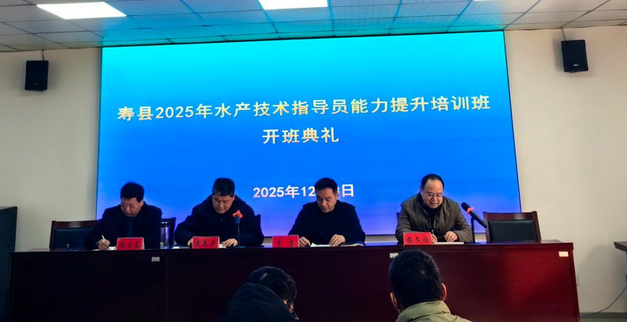12月8日至12日,寿县2025年水产技术指导员能力提升培训班在我校成功举办。继续教育学院院长李忠、副院长张文国、寿县水产服务管理中心副主任黄先平、党委委员陶玉春及来自寿县水产行业的50余名基层农技干部参加了开班典礼。