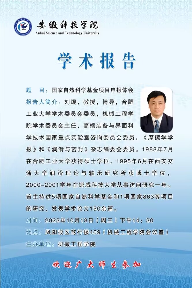 【日期:2023年10月13日】 【单位:机械工程学院】 【作者:钱晶晶】