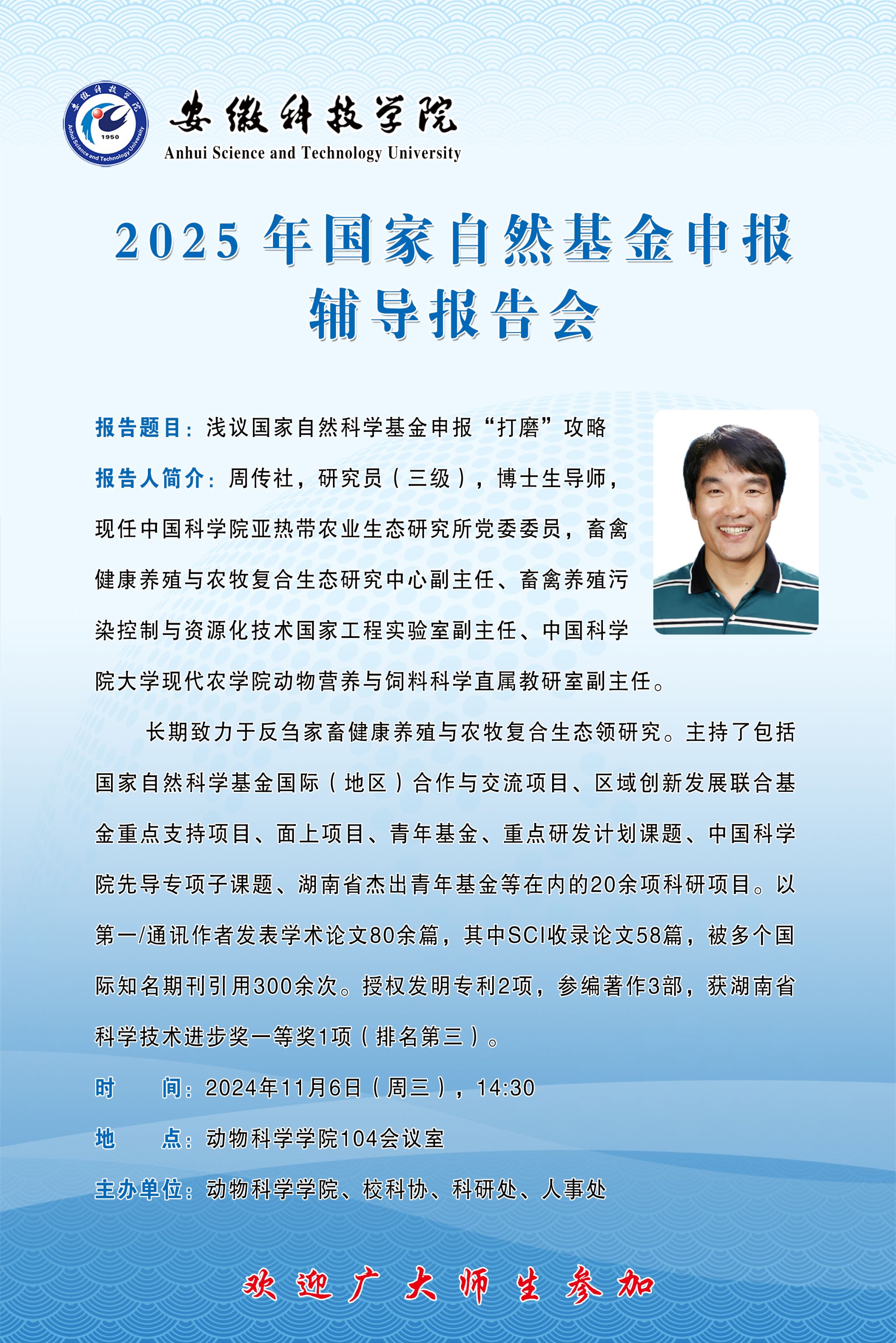 【日期:2024年11月01日】 【单位:科研处 校科协 动物科学学院】 【作者:钱晶晶】