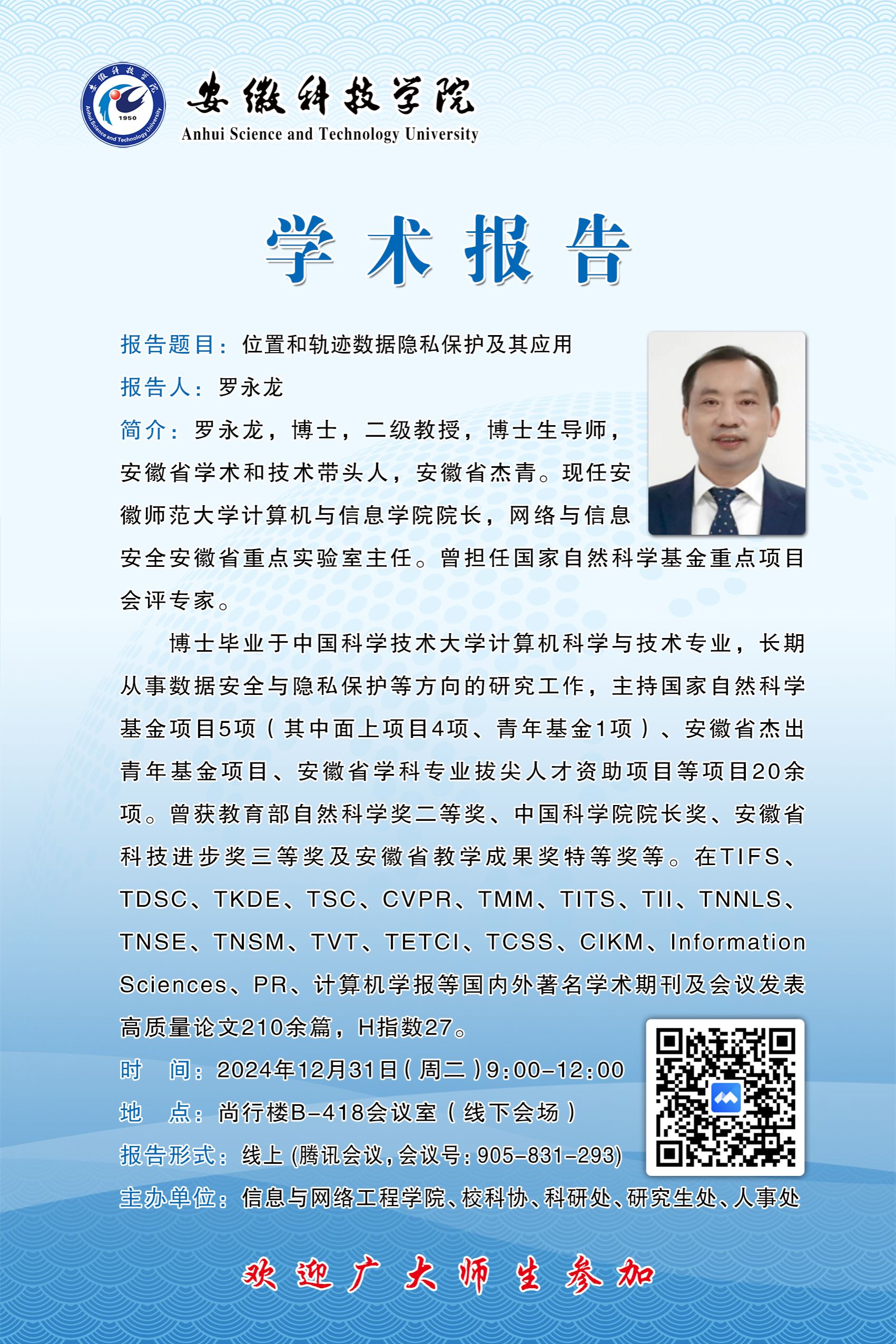 【日期:2024年12月26日】 【单位:科研处 校科协 信息与网络工程学院】 【作者:钱晶晶】