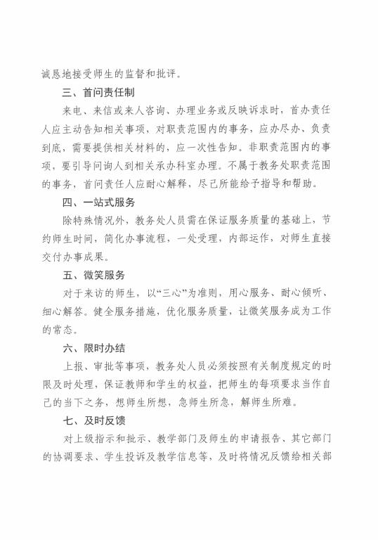 教务处中国足彩网发布为师生服务承诺制度的通知