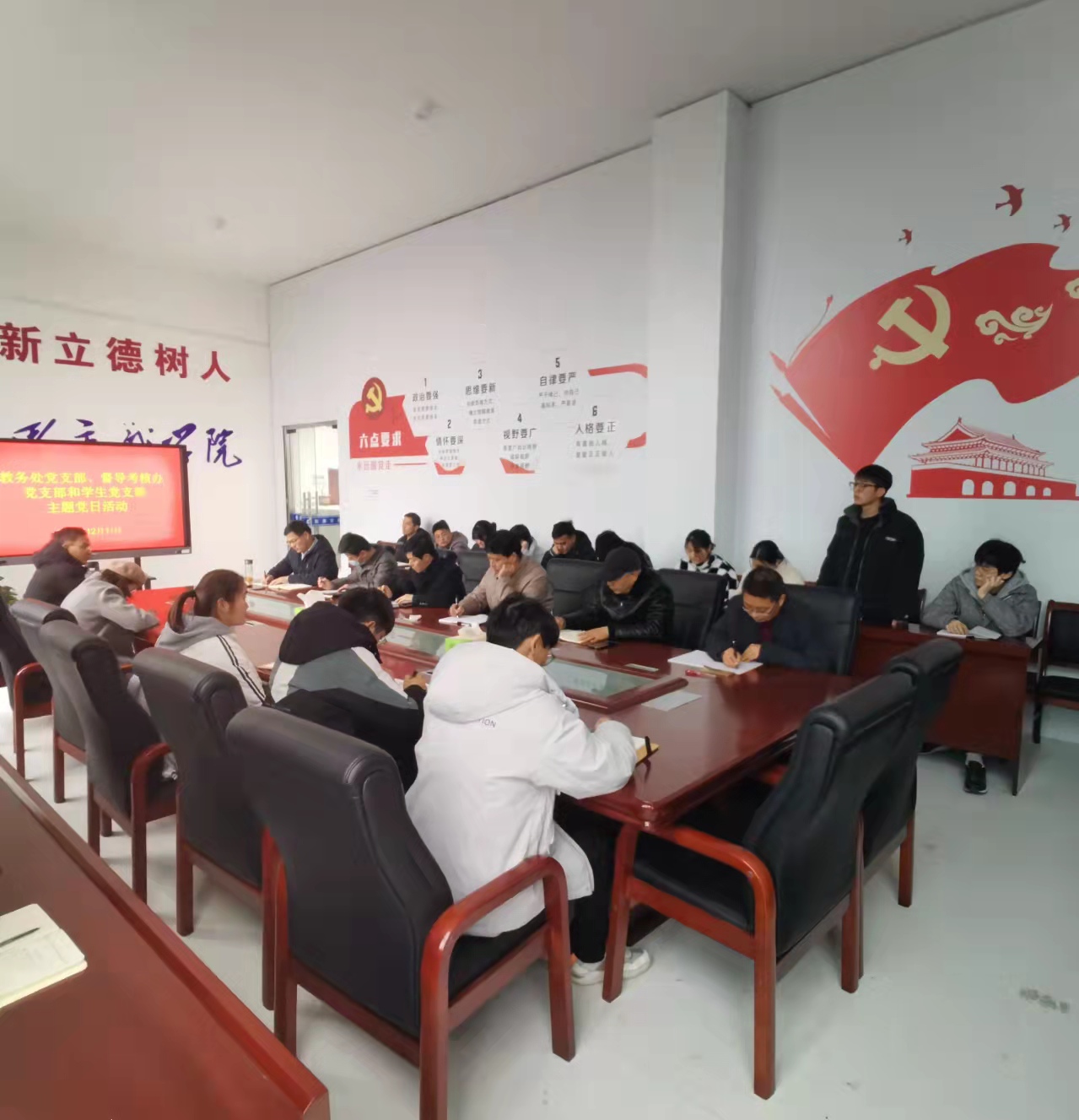 为深入学习贯彻党的十九届六中全会精神,持续做好党支部建设,真正做到为广大师生办实事、解难题,按照校党委统一部署要求,教务处党支部和督导考核办党支部于12月11日上午,分别在龙湖校区致知楼B306和凤阳校区图书馆B202联合开展“办实事、解难题”主题党日活动。教务处党支部、督导考核办党支部的全体党员和财经学院、电气学院、机械工程学院及农学院等四个学院的学生支部代表参加活动。活动分别由教务处副处长朱鹏程和高青海主持。