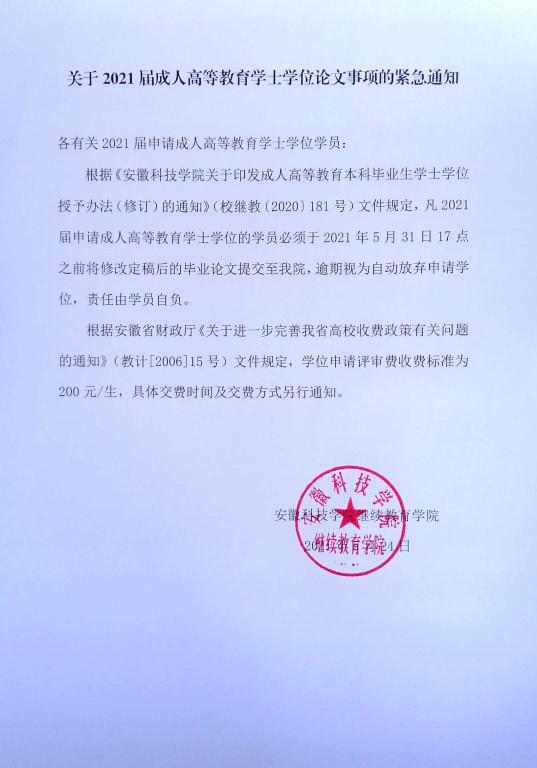 中国足彩网2021届成人高等教育学士学位论文事项的紧急通知