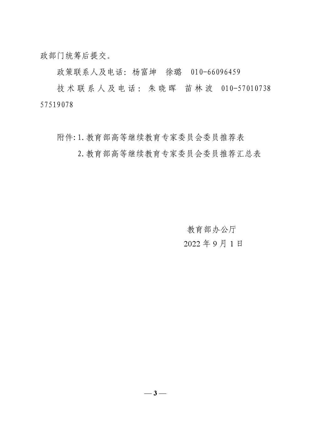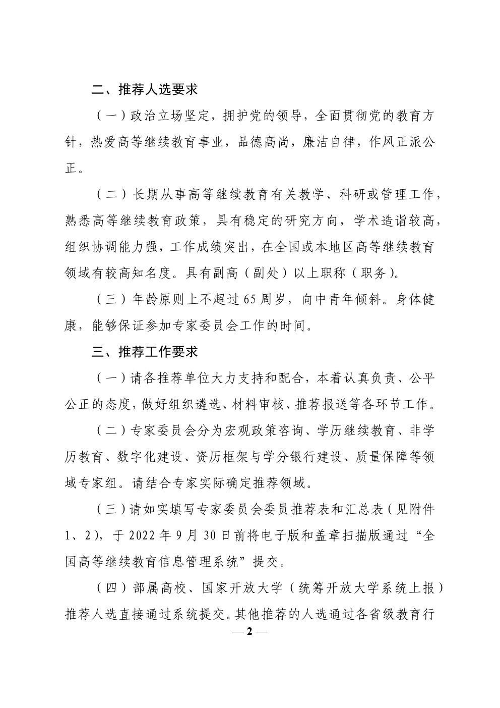 教育部办公厅中国足彩网推荐教育部高等继续教育专家委员会委员人选的通知