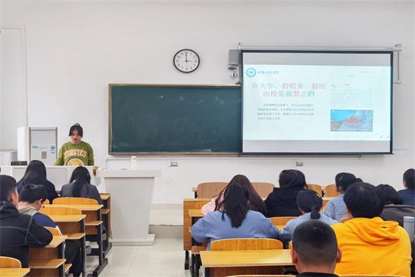 此次主题教育从两方面开展,一是用校训精神引领大学生行为规范。首先通过新闻案例分析大学生文明修养现状,剖析问题存在的原因。接着以介绍我国传统礼仪文化入手,说明加强当代大学生文明素养教育的必要性。最后立足校训精神传承,结合《安徽科技学院学生日常行为规范(试行)》及《学生手册》相关要求,围绕修身养性立德、格物致知立学、正心诚意立事、创新发展立世四方面进行教育引导。二是在党史学习与青年榜样中获得感悟。用本校青年榜样单新海同学修身进德、刻苦认真的事例激励新生提高文明素养,规范自身言行,争做新时代新青年。同时结合党史教育,播放“中国共产党百年述职报告”视频,让同学们在百年党史中汲取奋进力量。