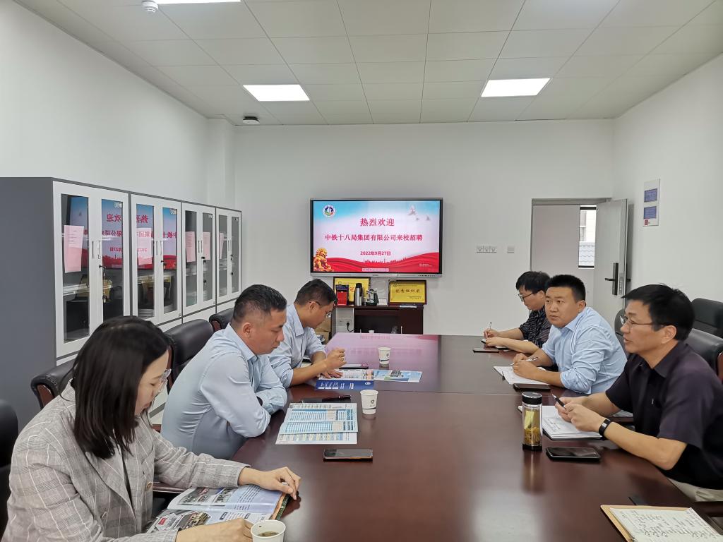 建筑学院党委书记傅友福、副院长张伟、党委副书记谢宜勤对中铁十八局的到来表示热烈欢迎和诚挚感谢。傅友福介绍了学院的基本情况及2023届毕业生的有关情况,吉经理介绍了中铁十八局的相关情况,双方希望进一步加强交流与合作。