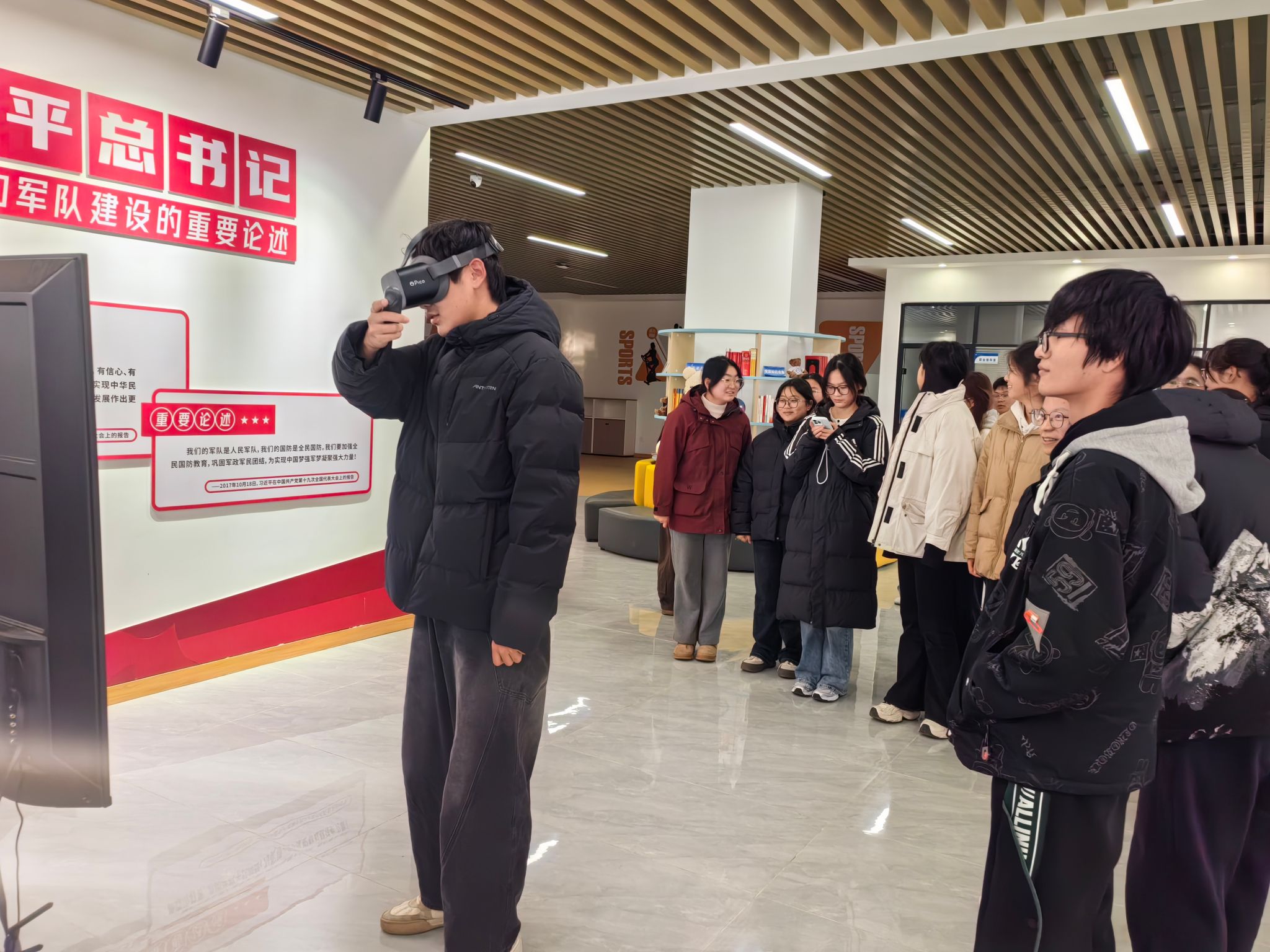 活动现场,武辉传达了本次消防安全的重要意义,阐述了本次消防VR安全教育的主要内容。他指导学生佩戴VR眼镜,组织学生通过虚拟场景技术,系统学习了消防器材和消防标识,模拟演示了消防隐患排查、高层火灾逃生、校园火灾逃生等内容。同时他带领学生互动体验,让学生在身临其境的过程中提高了消防安全意识,学习了消防安全知识,强化了消防安全防护技能等。消防VR的演示后,2025级新生们纷纷表示收获很大,不仅对火灾场景有了更直观、深刻的认识,也切实提升了应对消防险情的信心和实际操作能力。?
