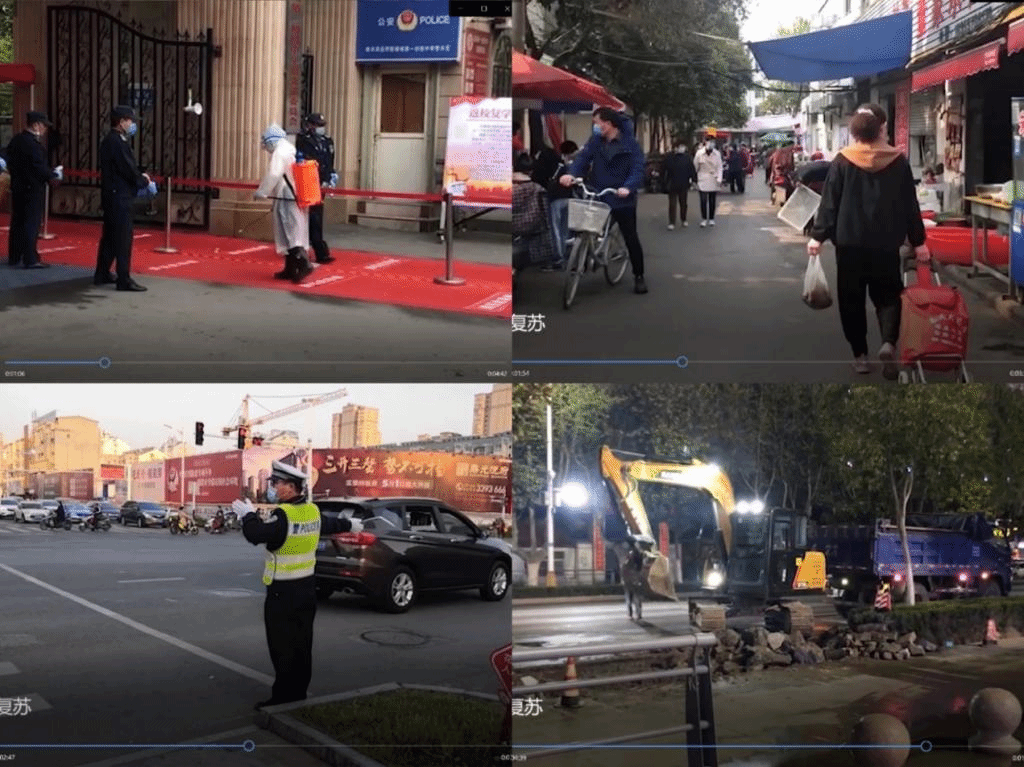 三位同学分别在所在家乡——宿州、蚌埠和滁州,用手机记录下非常时期下各类人群的生活、故事,“抗疫”中的感人事迹以及后疫情时代家乡建设情况,传递积极力量,坚定抗击疫情的必胜信念,最终剪辑制作成微视频《复苏》。
