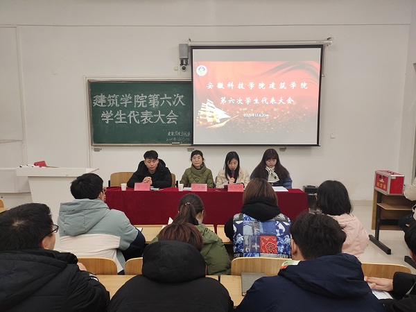 12月20日晚,建筑学院在致知楼C107教室召开建筑学院第六次学生代表大会。建筑学院辅导员沈德艳、阮怀思、蒋臣及学代表出席会议。会议由阮怀思主持。