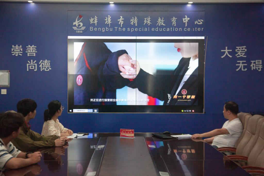 实践团受到了蚌埠特殊教育中心政教处主任吕辉的热情接待,在参观校园的教学场所和活动场所,观摩了学校组织的防震逃生演练之后,双方进行了基本情况介绍,并围绕“五育并举 赋能成长”进行深入探讨。