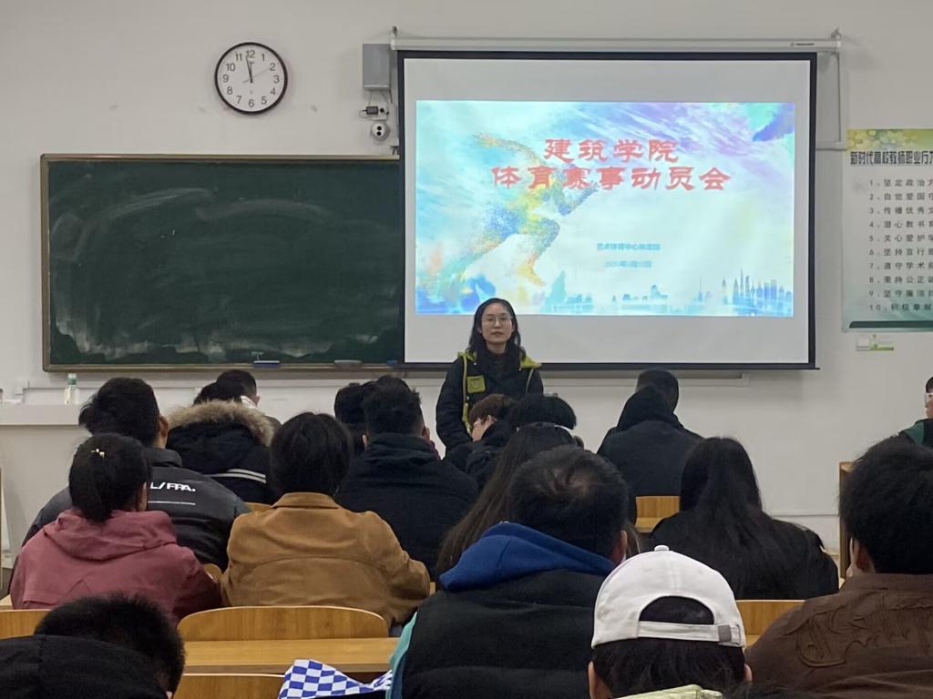 追山赶月莫停留,平芜尽处是春山。3月22日中午,建筑学院在致知楼B105召开了体育赛事赛前安全教育会议,学院党委副书记、纪委书记谢宜勤,辅导员武辉、王明哲,篮球队、排球队队员及学院体育部工作人员参加会议。会议由团委书记沈德艳主持。