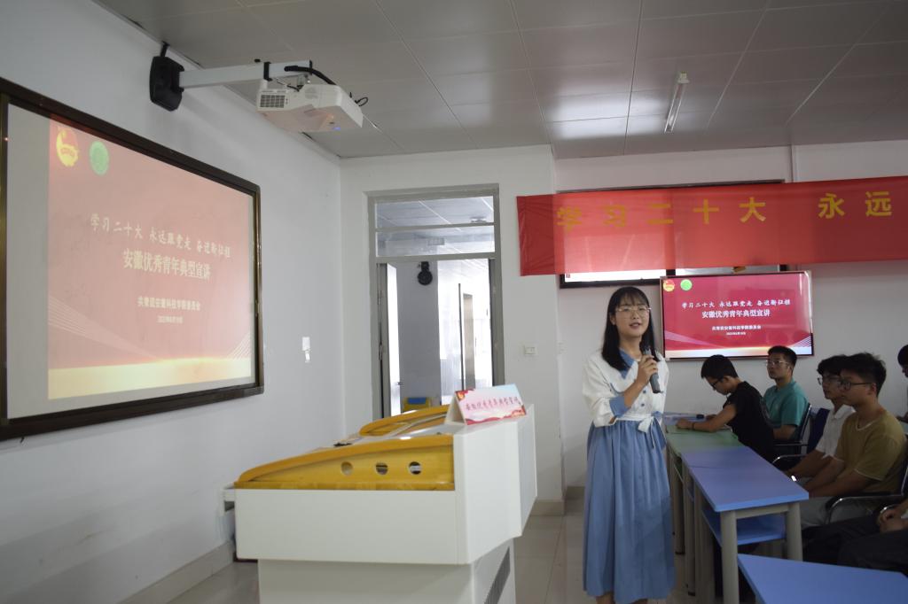 为充分发挥青年典型模范带头作用,营造学习安徽省各级青年五四奖章、“两红两优”等优秀青年典型事迹浓厚氛围,进一步组织引导青年学生将党史团史理论学习与社会实践相结合,推动党的二十大精神、团的十九大精神进校园,6月16日至6月19日,安徽科技学院建筑学院“筑梦青年”院级重点宣讲团在校团委的统筹安排和建筑学院教师的专业指导下,按照全覆盖、广领域、多渠道的要求开展两场“学习二十大 永远跟党走 奋进新征程”宣讲活动。活动覆盖建筑学院青马学员、党员、入党积极分子、入团积极分子、受资助大学生等百余人。