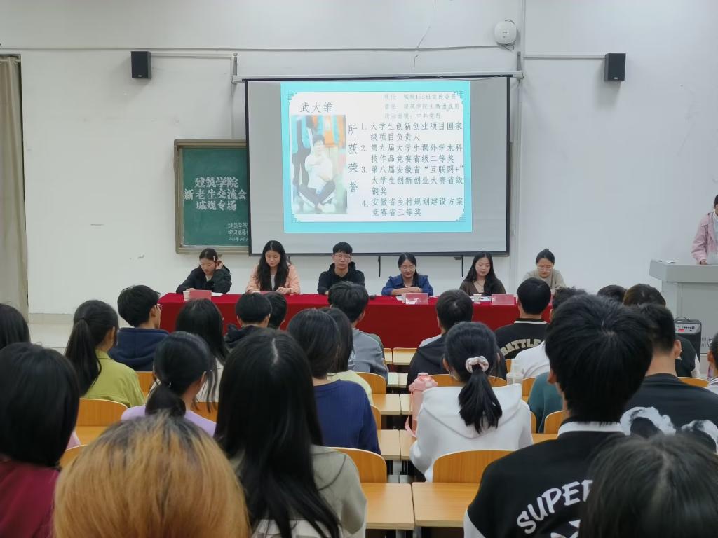 根据新生入学教育安排,进一步加强学风建设, 10月份以来,建筑学院各专业召开了新老生学习生活经验交流会。交流会老生代表为各专业学生干部、学生党员、奖学金获得者等,2023级全体新生参加。