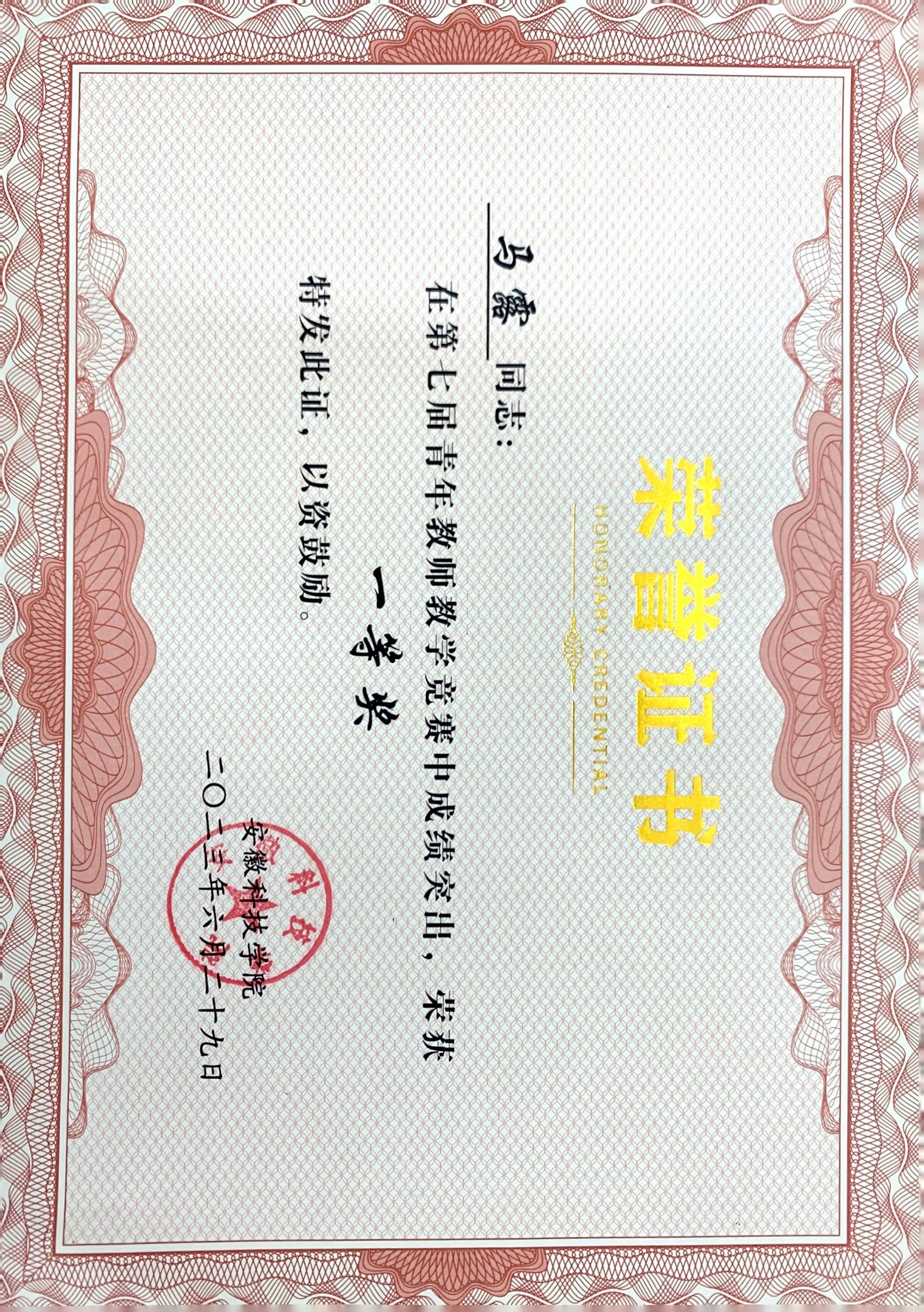 建筑学院马露老师荣获安徽科技学院第七届青年教师教学竞赛一等奖
